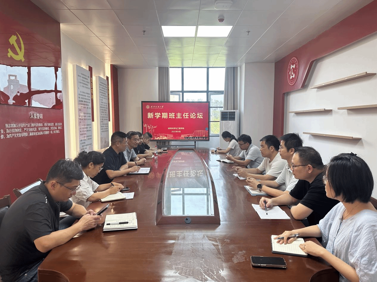 9 月 7 日下午,材料学院新学期班主任论坛在崇远楼324会议室召开。学院党委书记王罗新、学生工作负责人出席会议,各年级班主任全员参会。本次论坛,重点部署新学期学生安全稳定工作,并对 25 级新生迎接工作进行全面安排。