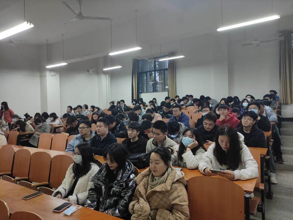 毛老师先带领同学们一起观看了视频《少年》,随后从部队简介、入伍基本条件、入伍流程、大学生参军特别优惠政策和军营生活等方面做了简要阐述,分析了国家和湖北省政府对在武汉参军入伍大学生的相关政策以及参军对学生本人的影响,鼓励同学们积极响应国家号召,立志献身国防事业,号召同学们踊跃登记报名,为国防建设奉献青春力量,为学校和学院增光添彩。
