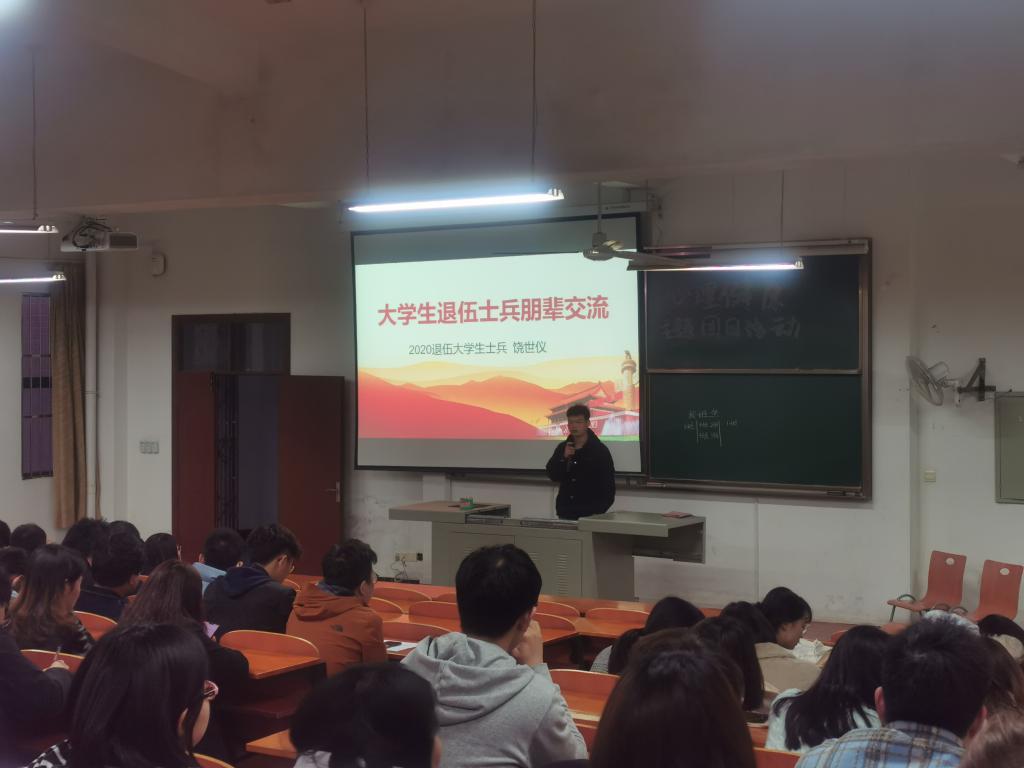 退伍士兵饶世仪给大家讲述了部队里的点点滴滴和自己两年以来的军旅生活,为同学们详细介绍了报考军校、部队提干、部队文职等相关内容,更加激发了同学们的参军热情。