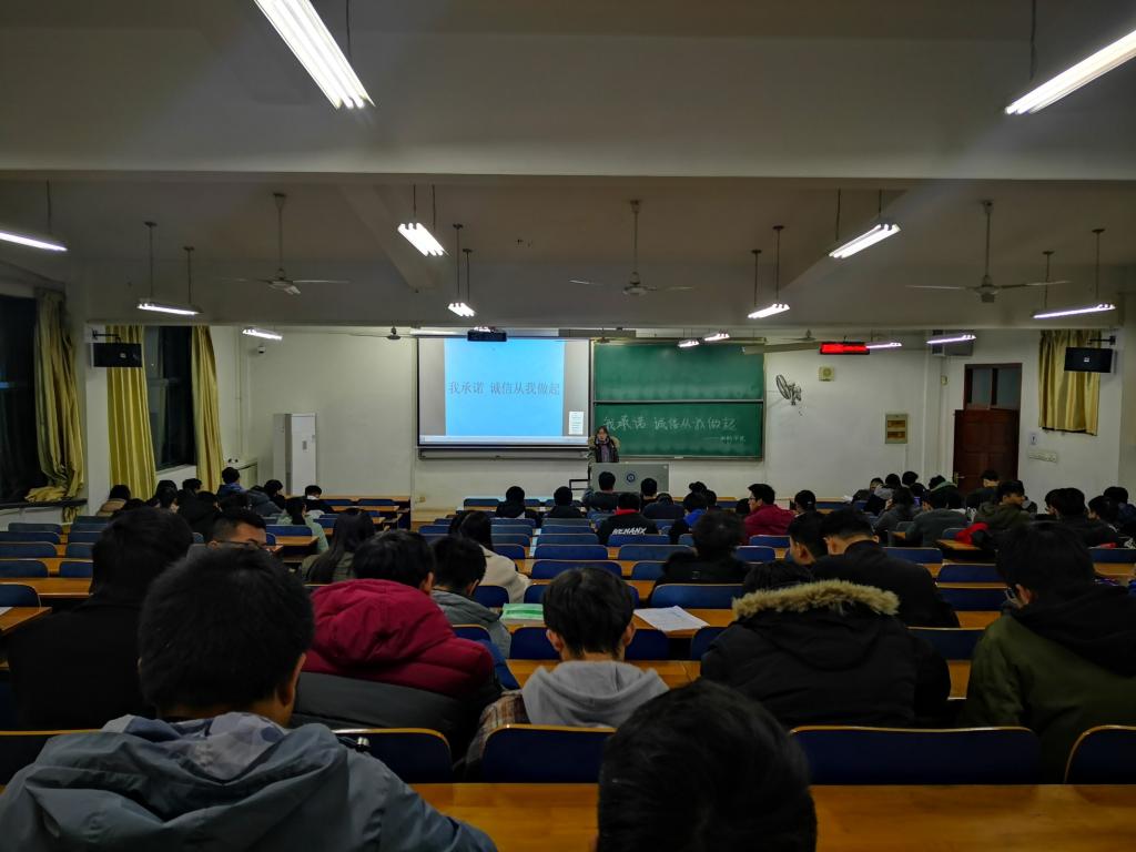 11月24日,材料学院利用晚点名时间,组织全院学生开展了“奋斗青春 诚信人生”主题班会。