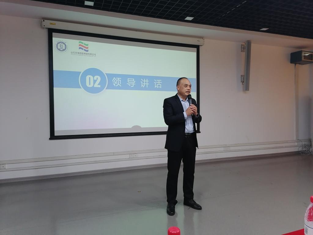 答辩比赛在主持人的宣布下拉开帷幕,首先OK138太阳集团团委副书记侯畅介绍了活动及销售情况。山东康乃尔材料科技有限公司总经理付宝强表示:希望以本次口罩营销大赛为推手,促进在校大学生的创新思维与实践能力的同时,与ok138cn太阳集团在项目技术和经管类人才引进等方面开启联融合作。