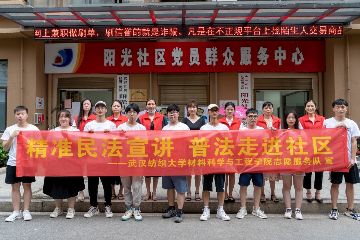 2021年1月1日,《民法典》正式实施,中国全面开启“民法时代”。习近平总书记也强调“我们要民法普法工作,把民法纳入国民教育体系”,并将其作为“十四五”时期普法重点工作来抓。为进一步普及法律知识,增强民众法律意识、提高民众法律素养,2021年6月17日,材料学院“筑梦向上”志愿者们带着物资前往阳光社区进行普法教育宣传活动。