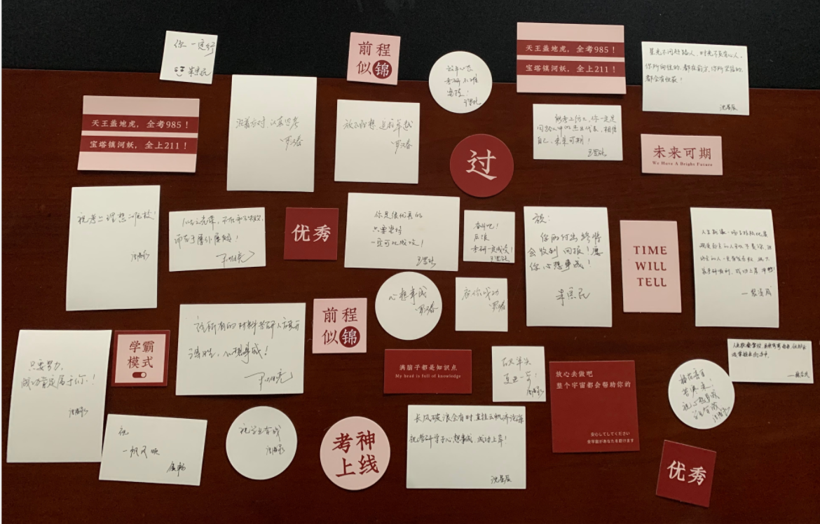 关切的祝福、实用的礼物让备战考研的学子感受到来自学院全体师生的祝福和鼓励。活动结束后,同学们纷纷表示被卡片上的祝福语感动到,浑身都充满了力量。