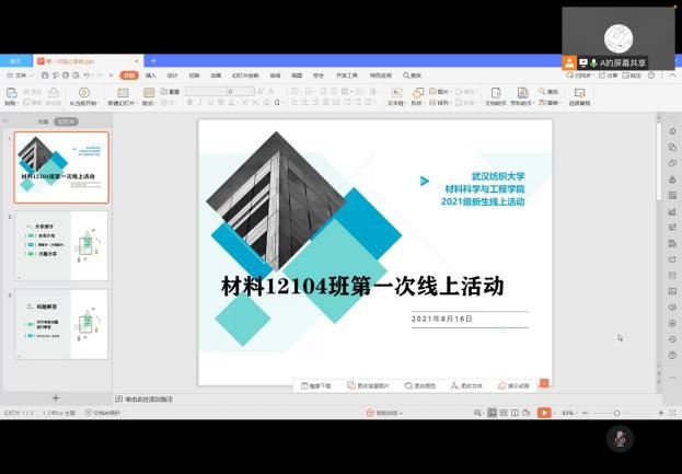 材料学院21级新生第一次线上班会圆满结束啦!同学们对彼此有了一个新的认识,也对材料学院有了初步的印象。大家纷纷表示非常期待大学生活,渴望能和彼此成为知心伙伴,也梦想着未来的自己会更优秀!