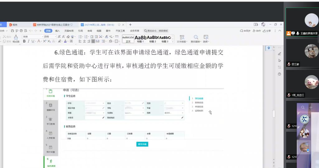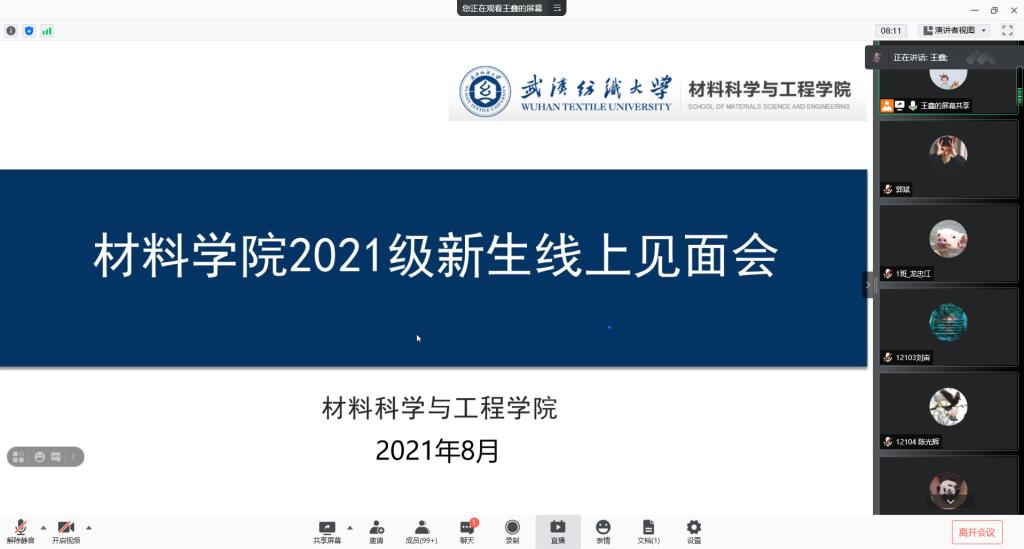 为了使2021级新生全方位了解材料学院,增进同学之间联系,顺利完成网上报到,8月19日上午十点,材料学院召开2021级新生线上见面会,对同学们比较关心的问题,如生源地助学贷款、学费缴纳、档案转接、迎新系统进行了详细的讲解。2021级新生辅导员、副班主任及全体新生参加会议。
