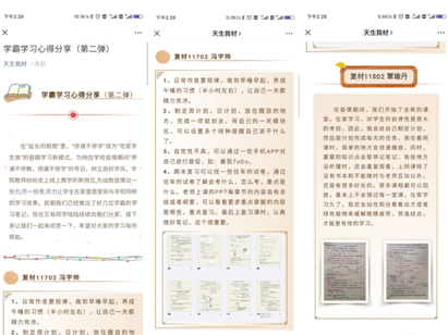 同时,为了配合学院的学风建设工作,让同学们不落下宅家学习的进度,“心语心园”通过“天生我材”微信公众号开展“书香抗疫”读后感收集活动和学霸心得分享。同学们纷纷交流分享了自己宅家期间阅读书籍的读后感,学霸们则分享了关于线上学习的心得方法和读书笔记,辅导员黄鹤老师和祝捷老师频频为他们点赞打call。
