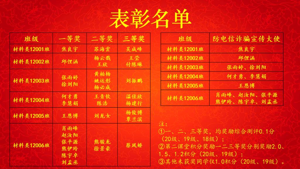 为进一步做好学院防范电信网络诈骗宣传工作,全面提升学生防范电信网络诈骗的意识和能力,根据《关于2021年全市公安机关打击治理防范电信网络诈骗工作意见》、武汉市公安局文化保卫局《关于在全市高校开展“无诈高校”“无诈院系”创建活动的工作方案》等有关文件精神和学校相关要求,材料学院于4月7日-12日开展了防电信诈骗竞赛活动,并于4月15日晚召开了防电信诈骗总结表彰大会。
