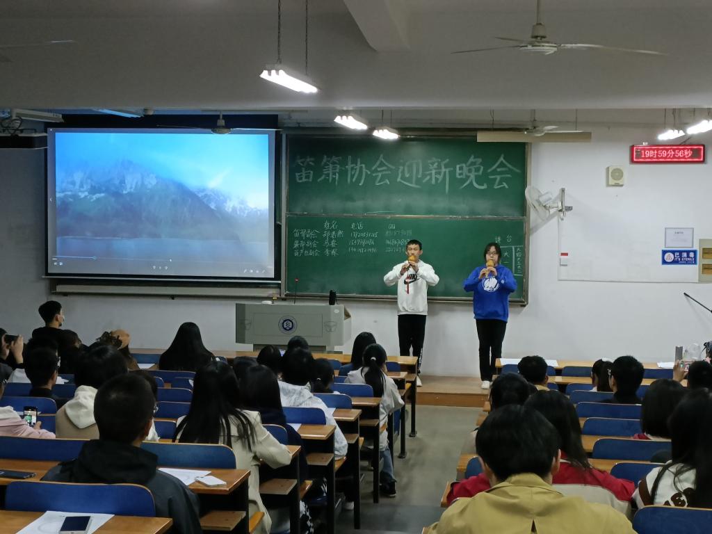 首先,主持人陈宇薇就协会的基本情况以及举办的特色活动进行简单介绍;随后,笛部、箫部、葫芦丝副会一一介绍了竹笛、洞箫、葫芦丝、巴乌的魅力,并进行了展示表演;最后,会长郭程靖讲述了自己进入的协会的感受,鼓励同学们积极参与社团活动,在笛箫大家庭里找到志同道合的朋友,并真正学习到民乐相关本领。