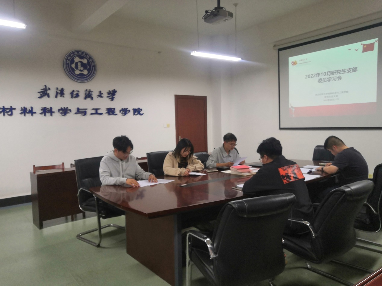 2022年10月27日,OK138太阳集团研究生党支部在八栋教学楼506会议室召开十一月支委会。研究生党支部全体支委和研究生党支部书记胡晓参加了本次会议,会议由支部书记胡晓主持。