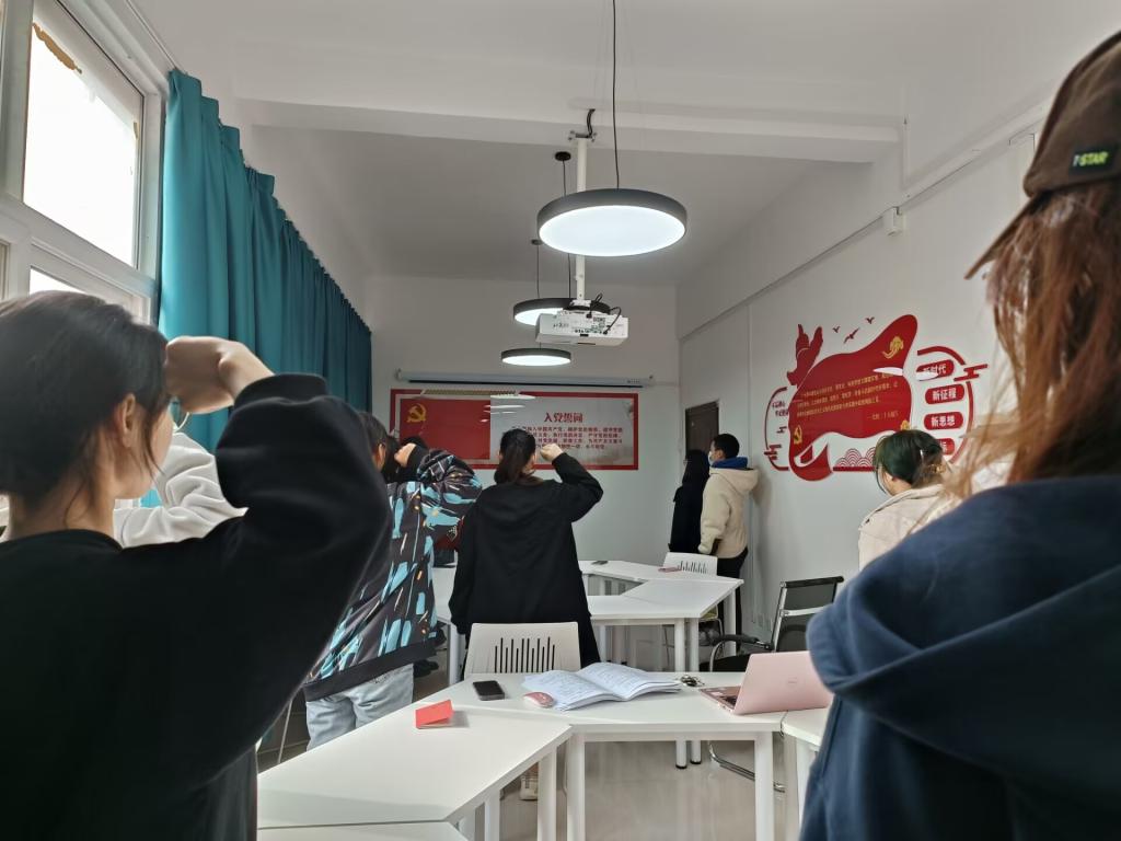 党徽闪闪发光,誓词慷慨激昂,通过这次活动的开展,党员同志们更加坚定了为共产主义事业奋斗终身的理想信念,纷纷表示会在以后的学习和生活中发挥先锋模范作用,关注时事政治,关心帮助同学,常态化践行学雷锋志愿活动,让青春在新时代绽放绚丽之花。