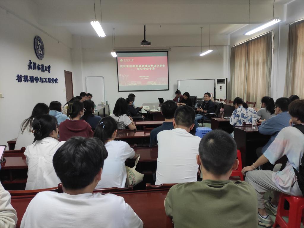 5月8日下午,材料学院在8F506会议室组织开展本科生论坛暨朋辈领航考研分享会,学院党委书记陈桂枝、副院长刘欣、党委副书记魏剑,专业教师、班主任、辅导员、优秀考研学生代表以及复材专业大三学生参加了本次考研分享会。