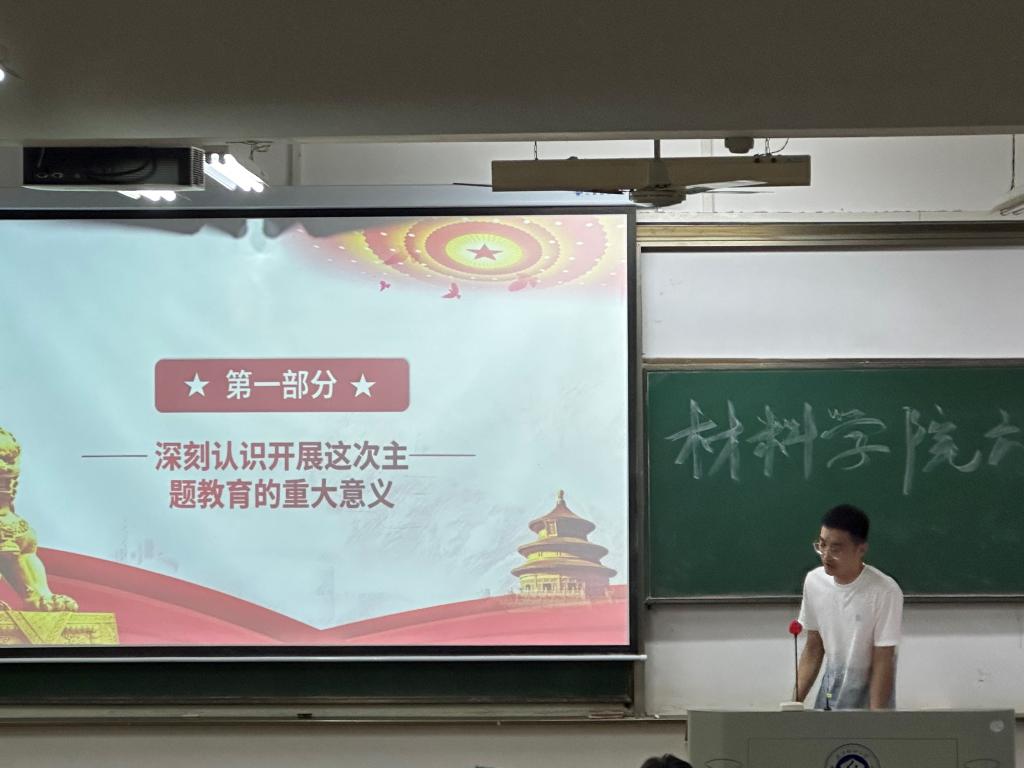 会议开始,全体成员起立奏唱国歌,重温入党誓词。随后,领学人以PPT和视频等形式分享了理论学习心得体会。材科12001吴成峰与复材12002温佳欣主讲“习近平总书记在中央政治局第五次集体学习时的重要讲话精神”,总书记要求,以教育之强夯实国家富强之基。全面落实立德树人根本任务,把高质量发展作为各级各类教育的生命线,建设教育强国是全党全社会的共同责任。