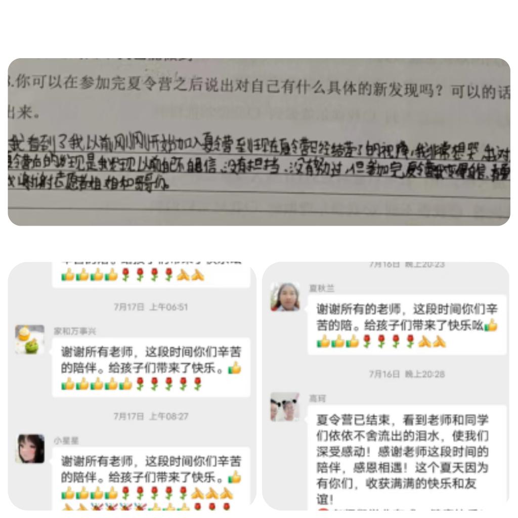 盛夏骄阳,逐梦前行。本次暑期夏令营的成功开办,不仅陪伴小朋友们度过了一个愉快的假期,而且受到了谢埠村当地村委会和村民朋友的热烈欢迎和广泛赞誉,取得了很好的效果和反响。五年级的小朋友谢经说,谢谢你们把我带入了一个自信心的团队,通过烦恼盒子,联欢会等活动,我觉得自己变得更加自信了,是你们让我更愿意去表达自己,这里也很好玩,,希望你们明年还来。二年级夏浩然的妈妈说,我家浩然每天都会很激动地回来跟我分享,今天志愿者老师教了他什么,他学到了什么,还会给我展示。他说每天和你们待在一起很开心,为了保证小朋友的安全,你们每天还保接包送,真的很谢谢你们这群志愿者的付出,你们辛苦啦。队长王江峰回忆这次夏令营时说,本次实践活动不仅给当地小朋友带去了知识和欢乐,同时让我们大学生感受到乡村是青年人的一片沃土,我们青年大学生需要去到乡村锻炼真实本领,乡村也需要我们大学生去奉献青春力量,这是一个“双向奔赴”的过程。