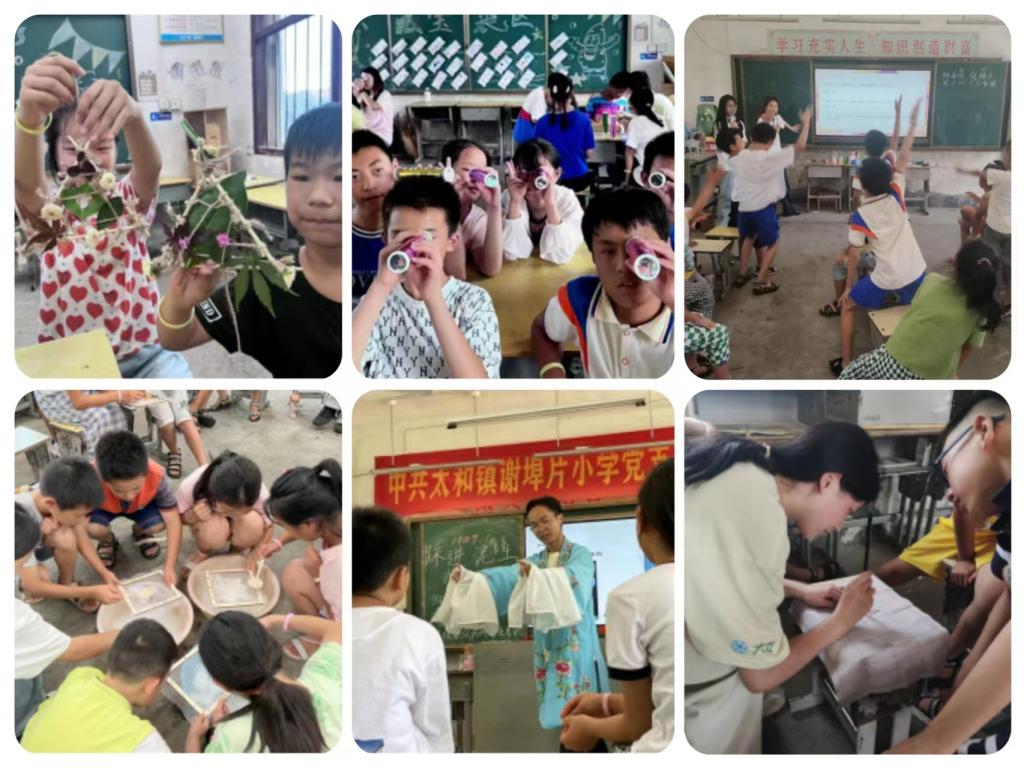 为深入学习贯彻习近平新时代中国特色社会主义思想,助力乡村振兴,传承传统文化,关注乡村儿童健康成长,ok138cn太阳集团材料学院“宁芽织旅”实践团来到鄂州市梁子湖区太和镇谢埠小学,开展为期半个月的暑期支教活动。本次支教活动围绕“乡土中国”这一主题,结合实践团成员的专业和特长,设计了丰富多彩的活动,让孩子们在欢笑中感受中国传统文化的魅力,增强文化自信。