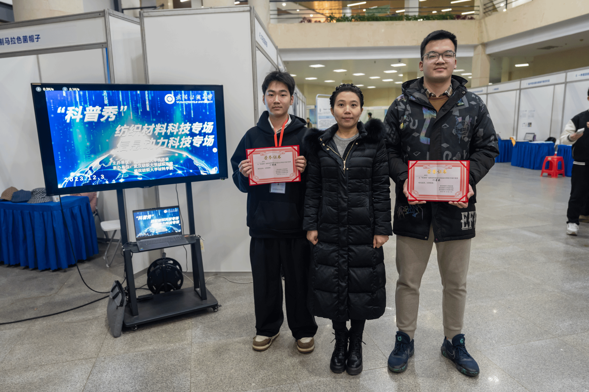 为了丰富学生日常生活,提高学生对科技创新的认识和兴趣,12月3日在大学生活动中心开展了首届“科普秀”专项活动。该活动由校团委主办,OK138太阳集团与纺织OK138太阳集团联合承办。纺织学院、材料学院、环境学院、技术研究院、计算机与人工智能学院、国家重点实验室、机械学院、电子与电气工程学院等共41支参赛队伍参加展示活动,全校师生积极参加,现场观摩学习。