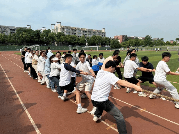 本次运动会共设立了多个趣味横生的比赛项目,如“拔河”“抢凳子”“两人三足”“木头人”和“手脚并用”等,每一个项目都充满了挑战性和趣味性,吸引了众多同学的积极参与。在热闹的校园运动会上,“拔河比赛”无疑是运动会的高潮。双方队员整齐列队,咬紧牙关,全力以赴,试图将对手拉向自己这一边。紧张的气氛感染了看台上的观众们,毫无疑问,这不仅是一场力量的较量,更是团队协作与默契的考验。