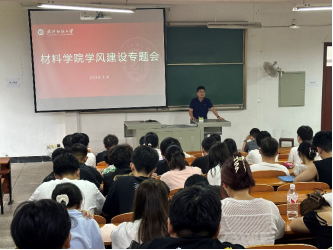 为规范学院研究生日常管理,营造良好的院风学风,进一步提升全体学生的学术素养和科研能力,7月4日,材料学院在8F T101召开了研究生学风建设专题会议,会议由刘欣院长主持,辅导员曾玉竹、全体研究生参与本次专题会。会议围绕研究生工作室管理办法、日常考勤管理制度、各项奖助评定、学术诚信等内容展开。