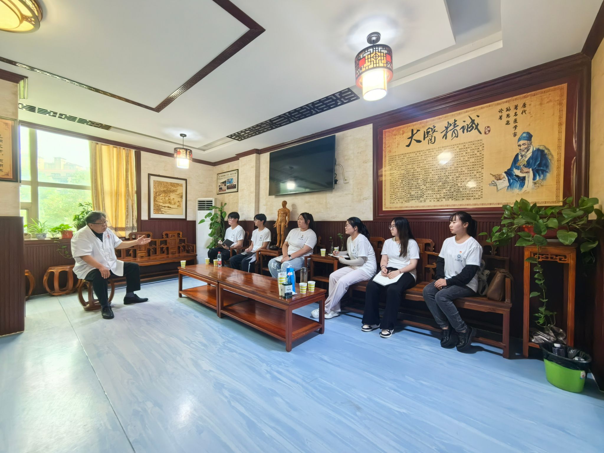 谈及“中医药文化”、“蕲春非遗文化”也是实践团此行关注的重点。“非物质文化遗产是中华优秀传统文化的重要组成部分,而‘蕲春艾灸疗法’是我国中医药领域非遗的典型代表。”国家级非遗蕲春艾灸疗法代表性传承人、蕲春县城南医院主任医师韩善明语重心长地对实践团成员说。他还从中医发展史、中医的“四气”和“六艺”、中医药文化、中华传统文化等4个部分阐释了自己多年来的临床经验,以及对中华传统文化的理解洞察,号召青年一代要有独立的思想,坚定文化自信,做中华民族文化的传承者、宣传者、实践者。
