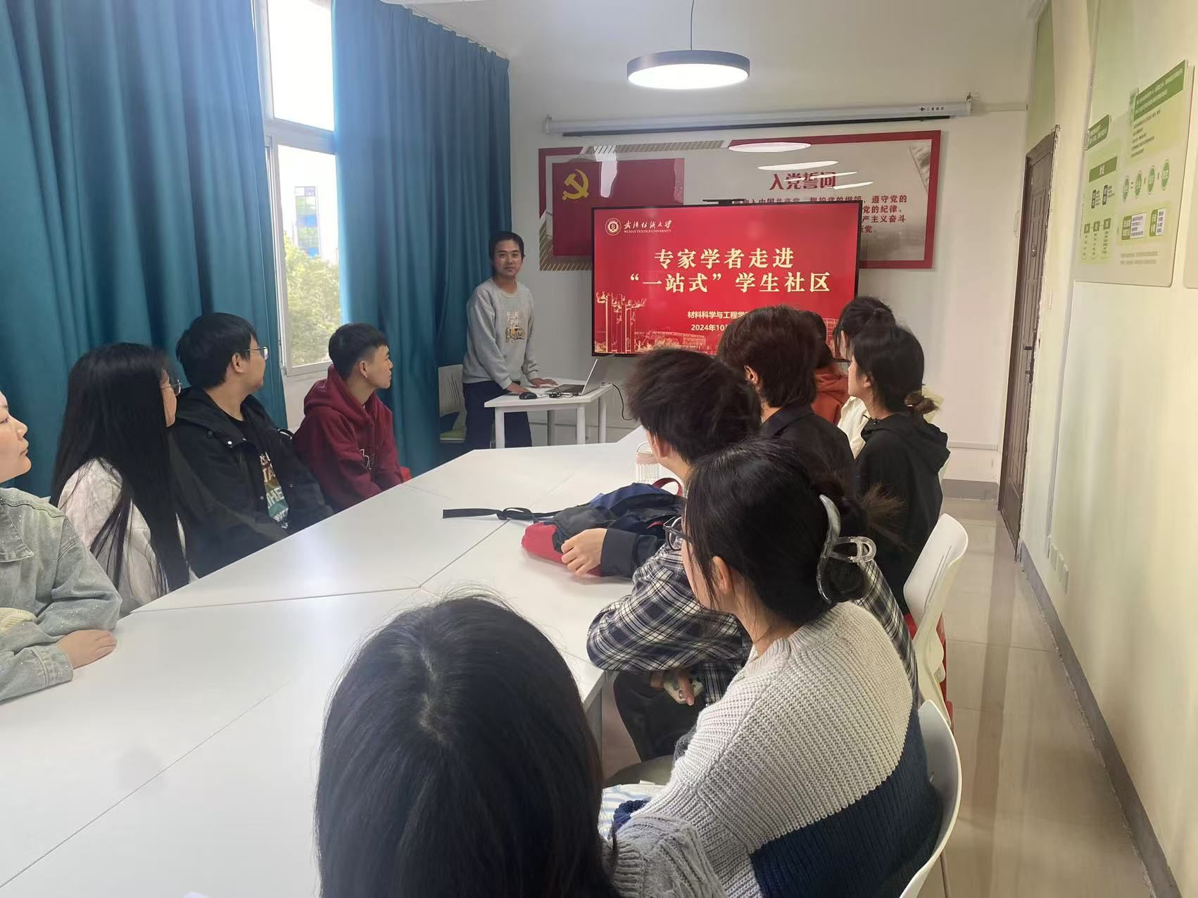 为大力弘扬科学家精神、涵养优良学风,10月24日下午2点,材料学院宋毅恒博士走进“一站式”学生社区,为在场同学带来了一场关于学术研究与个人成长发展的精彩演讲。