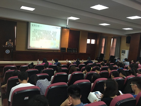 活动本着“心理健康,职能竞技”的原则,在比赛赛制上,分初赛和决赛选拔环节,能够更好地调动班级心理委员的积极性;在比赛内容上,更注重班级心理委员实际工作中的常识。初赛采取笔试的形式,考察学生心理学基础理论知识,各学院根据笔试成绩,共有十八名心理委员队获得了参加决赛的资格。比赛现场精彩激烈,高潮迭起。决赛为案例分析。参赛选手随机抽取案例,限时五分钟作答。案例分析环节中,十八名心理委员可谓是八仙过海,各显神通,尽管他们并没有接受过专业的心理学教育,但是却能在舞台上从容作答,极大的考验心理委员们的应急分析能力、语言组织能力以及知识运用能力。选手们透彻的分析、绝妙的方案,赢得了观众和评委们的阵阵掌声。