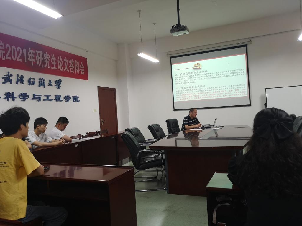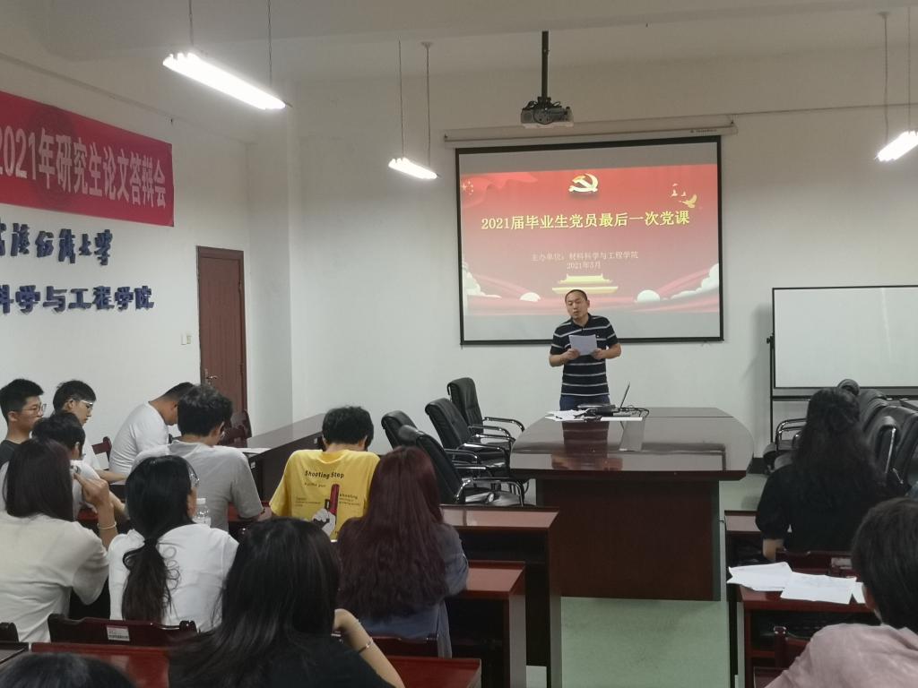 为贯彻落实中组部、湖北省委组织部《关于做好高校毕业生党员组织关系管理工作的通知》精神和学校有关要求,确保2021届毕业生党员组织关系、组织档案转移工作顺利进行,材料学院于5月30日上午在8F506组织开展了毕业生党员教育和最后一次党课,主题是“如何做一名合格的共产党员”。会议由材料学院学生二支部书记毛成兴老师主持。