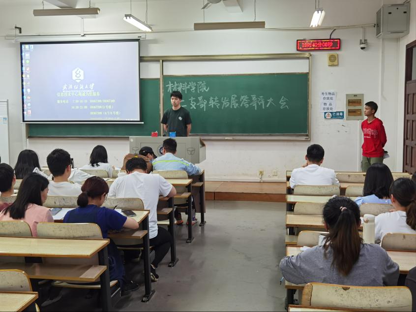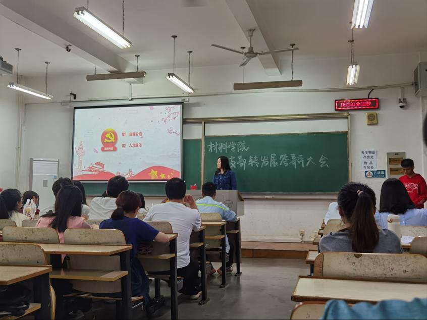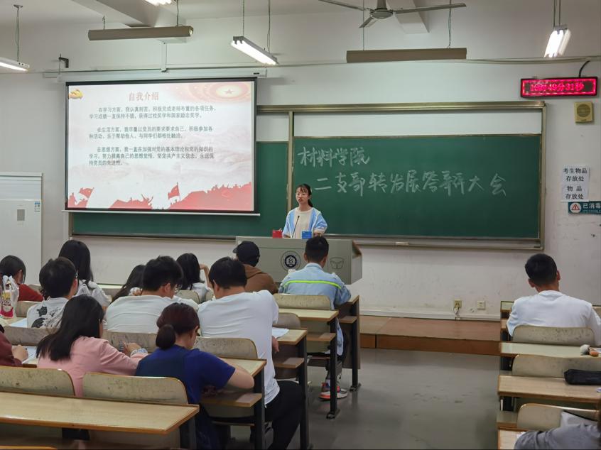 5月10日至11日晚,材料学院学生一支部和二支部在3栋教学楼召开转发展对象大会。大会由蔚翔和吕鑫杰主持,全体正式党员和部分积极分子参加了会议。