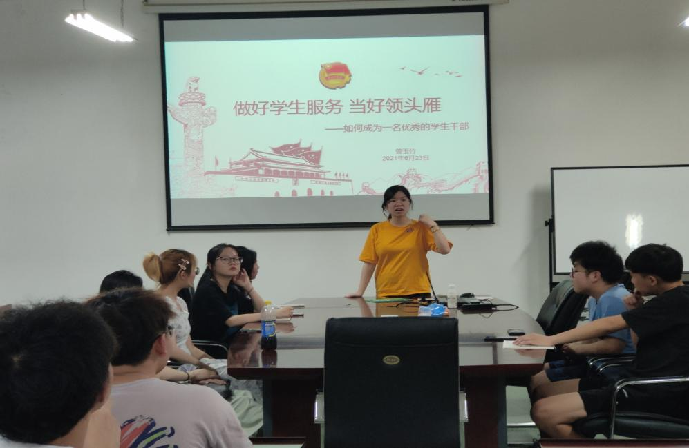 2021年6月23日下午2:00,材料学院在8F-506会议室召开第二期学生骨干培训会,团委书记曾玉竹老师以“做好学生服务,当好领头雁”为主题,从学生干部工作职责、工作能力及工作要求尽心具体阐释,对全体团委学生会成员进行主题团课宣讲。
