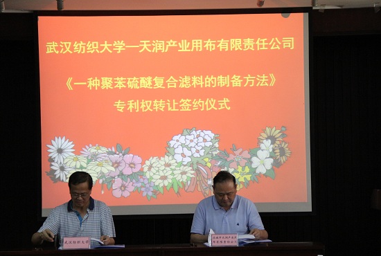 近日,由我校材料学院教授王桦、王罗新科研团队历时八年研制出科研成果,《一种聚苯硫醚复合滤料的制备方法》发明专利,以1000万元的价格进行了转让,受让方为应城市天润产业用布有限责任公司。